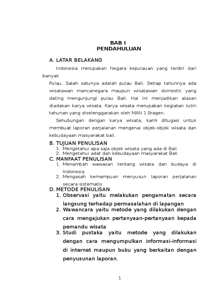 Contoh Pendahuluan Laporan Study Tour Ke Bali Kumpulan Contoh