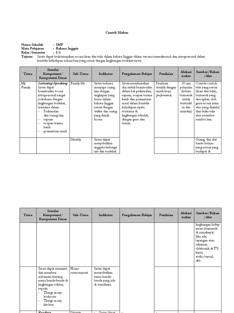 Contoh Perangkat Pembelajaran Silabus Bahasa Inggris Smp Kelas 7