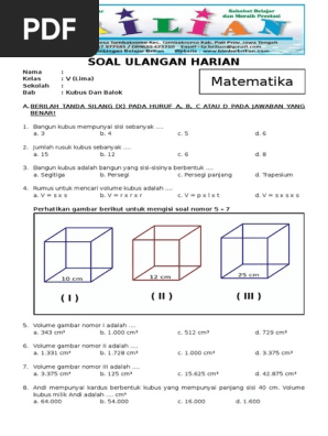 Soal Matematika Kelas 5 Sd Bab 5 Kubus Dan Balok Dan Kunci Jawaban