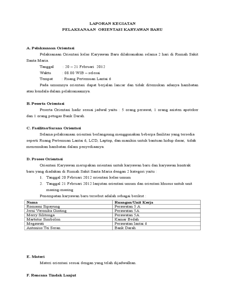 Contoh Laporan Kegiatan Orientasi Umum Dll
