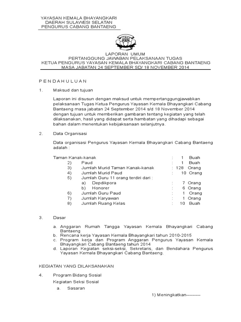 Doc Contoh Laporan Pertanggungjawaban Kepengurusan Era Oliviya