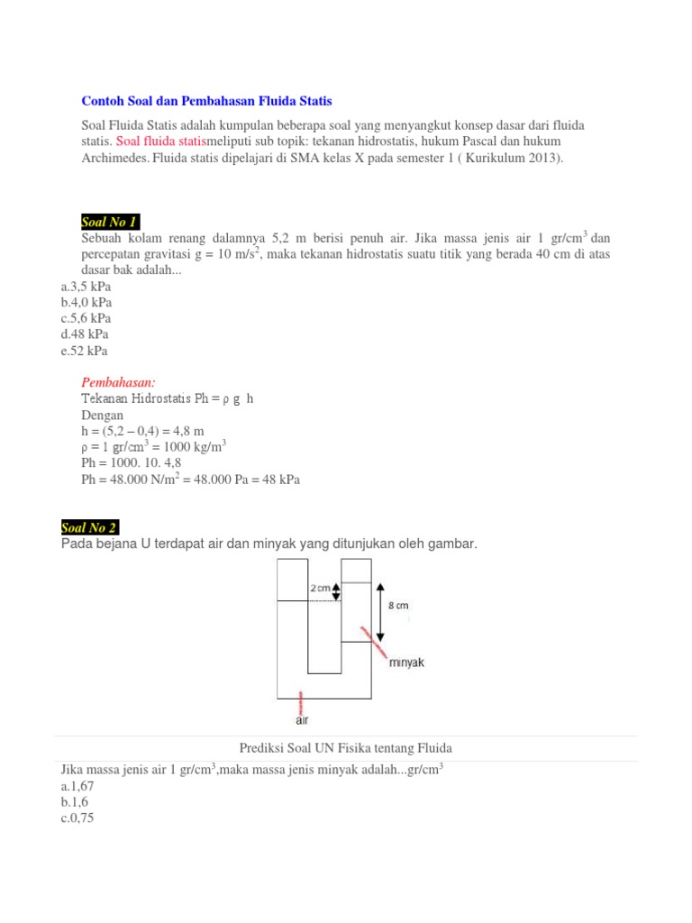 Rangkuman Contoh Soal Pembahasan Fluida Statis