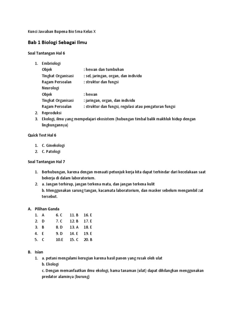 Kunci Jawaban Bupena Bio Sma Kelas X K13 N