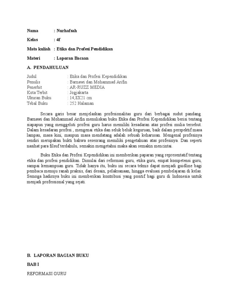 Laporan Bacaan B Indo Bahasa Indonesia Laporan Bacaan Fadilah