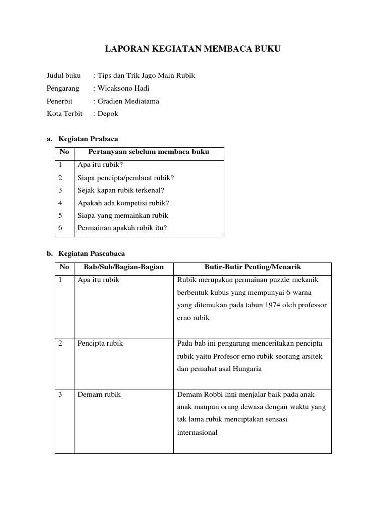 Buatkanlah Laporan Baca Dalam Bentuk Tabel Brainly Co Id