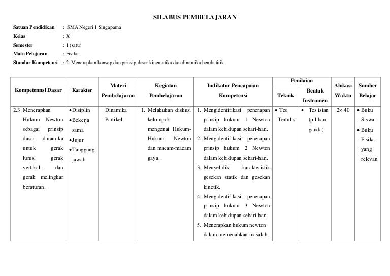 Panduan Contoh Silabus Smp Sma Ipa Fisika
