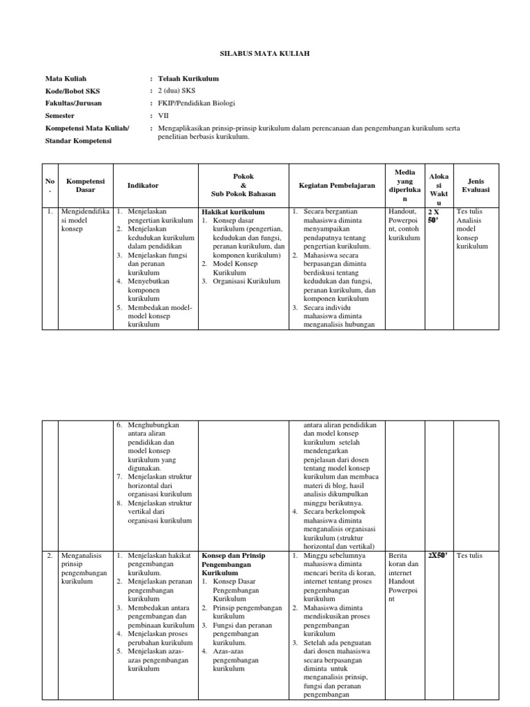 Silabus 2006 Perencanaan Pengajaran Biologi