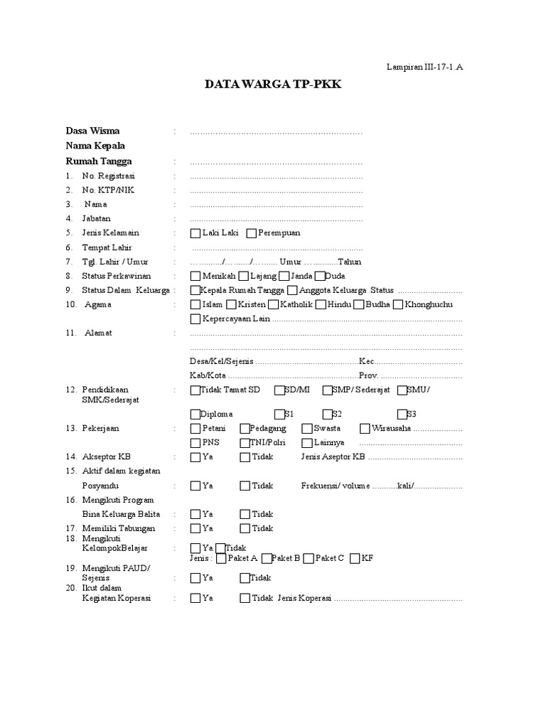 Cara Pengisian Buku Daftar Anggota Tim Penggerak Pkk Lampiran 13 A