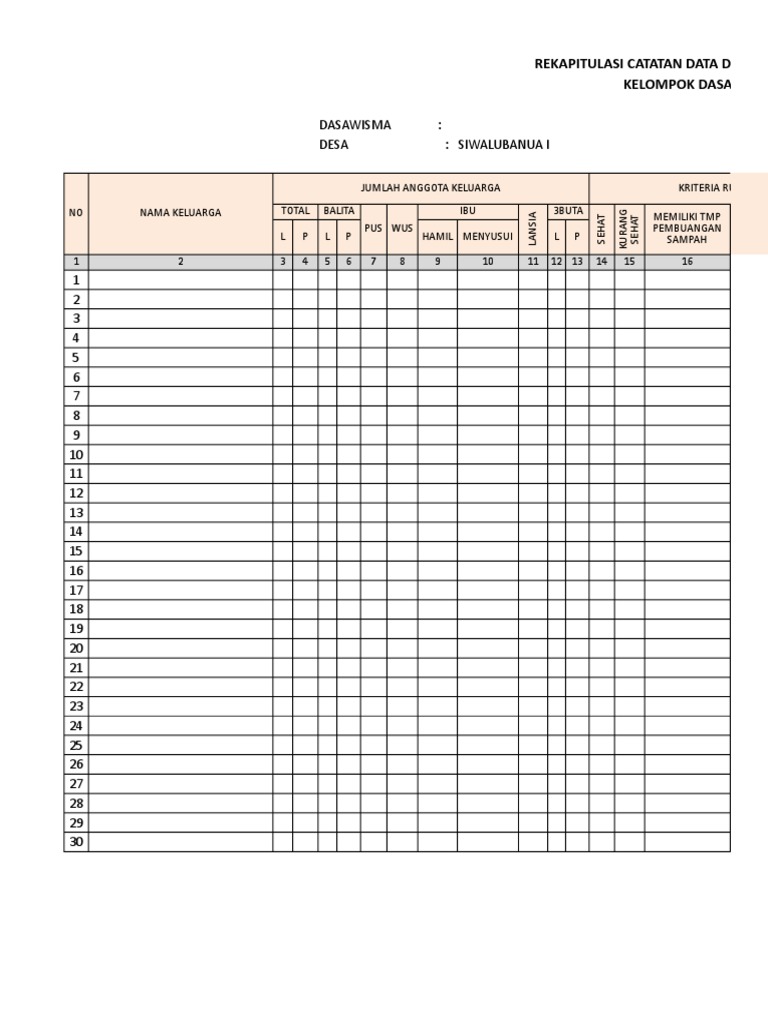 Catatan Dan Data Keluarga Dasawisma Pkk Dulohupa