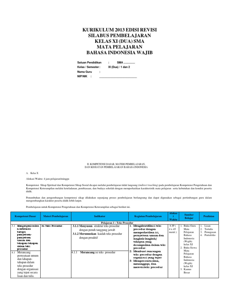 Doc Silabus Bahasa Indonesia Kelas Xi Khalimi Azaa Academia Edu